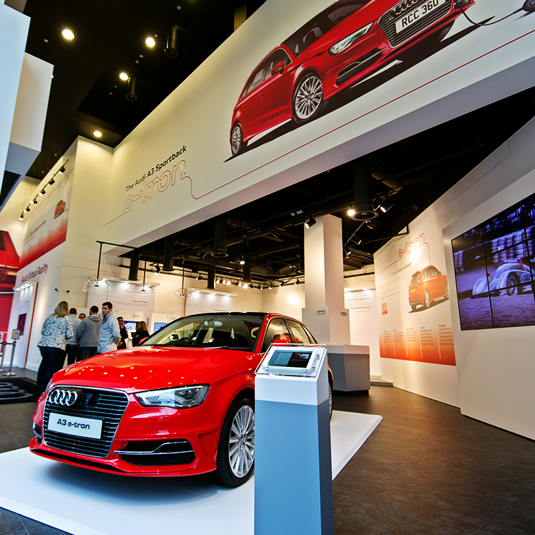 On behalf of Audi, we were asked to use our creative retail design expertise to deliver their interactive e-ton experiential store at Westfield, Stratford. The store showcases the A3 Sportback e-tron to shoppers in readiness for the national roll out of this recently crowned 2015 What Car? Electric Car of the Year at Audi Centres across the UK from 17 January 2015.