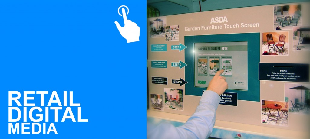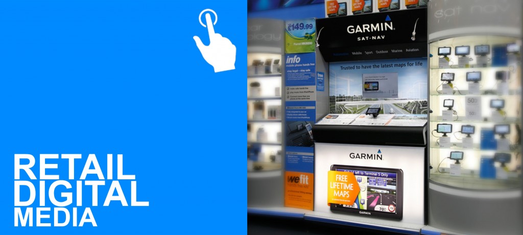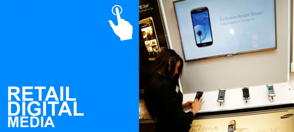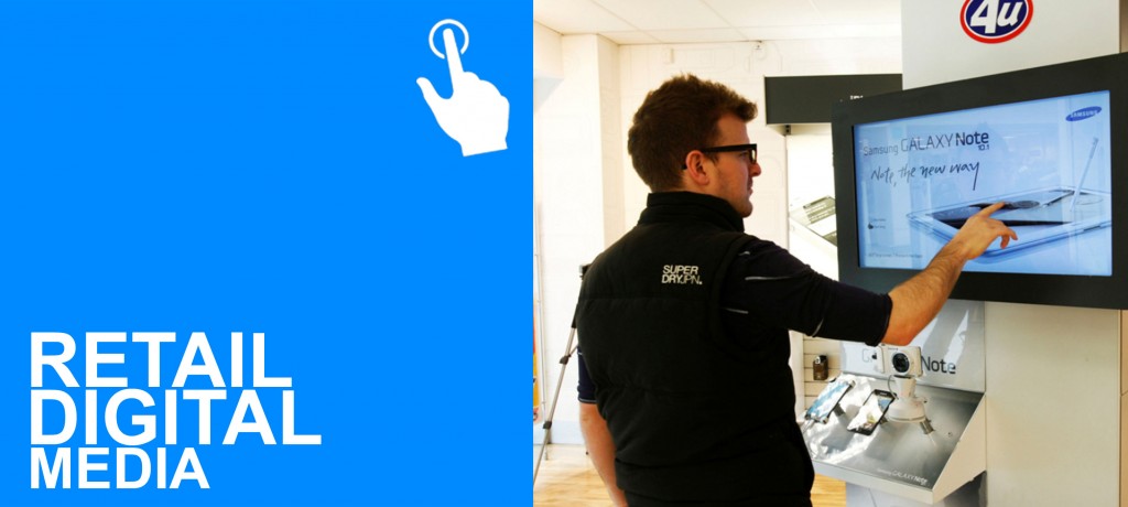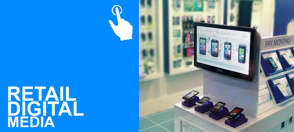 Stand alone screens in store, from 7″ up to 100″ can add impact and deliver a clear message in retail. We recommend smaller screens can be used next to products to assist with helping to sell extra key points about the product. Larger screens can be used as category sign posts or to help with atmosphere and navigation around a store. With large screens and projections creating a real buzz in store and creating a vibrant retail lifestyle.